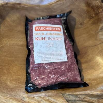 Saftiges, sorgfältig gewolftes Rindfleisch von Jungrindern im Alter von 14–16 Monaten. Perfekt für Frikadellen, Bolognese oder Aufläufe. Unser Faschiertes überzeugt durch zarten Biss, intensiven Geschmack und Qualität direkt vom Hof.